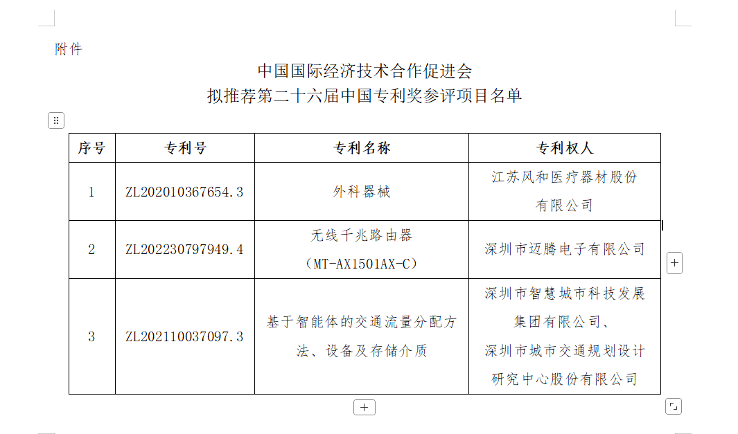 附 件:中国国际经济技术合作促进会拟推荐第二十六届中国专利奖参评项目名单