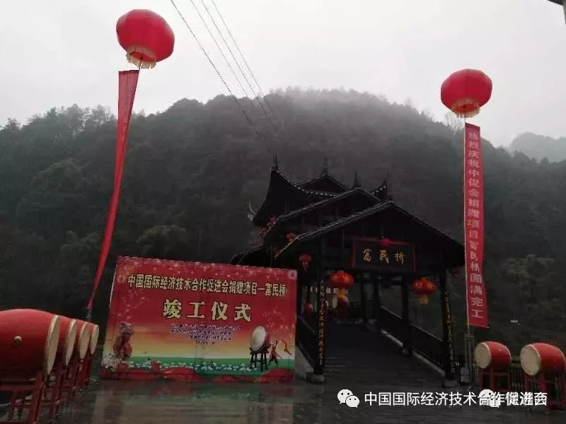 1月18日,中国国际经济技术合作促进会理事长杨春光一行到吉首市矮寨镇补点村实地考察扶贫捐赠项目,并参加了捐赠项目之一富民桥的竣工仪式。