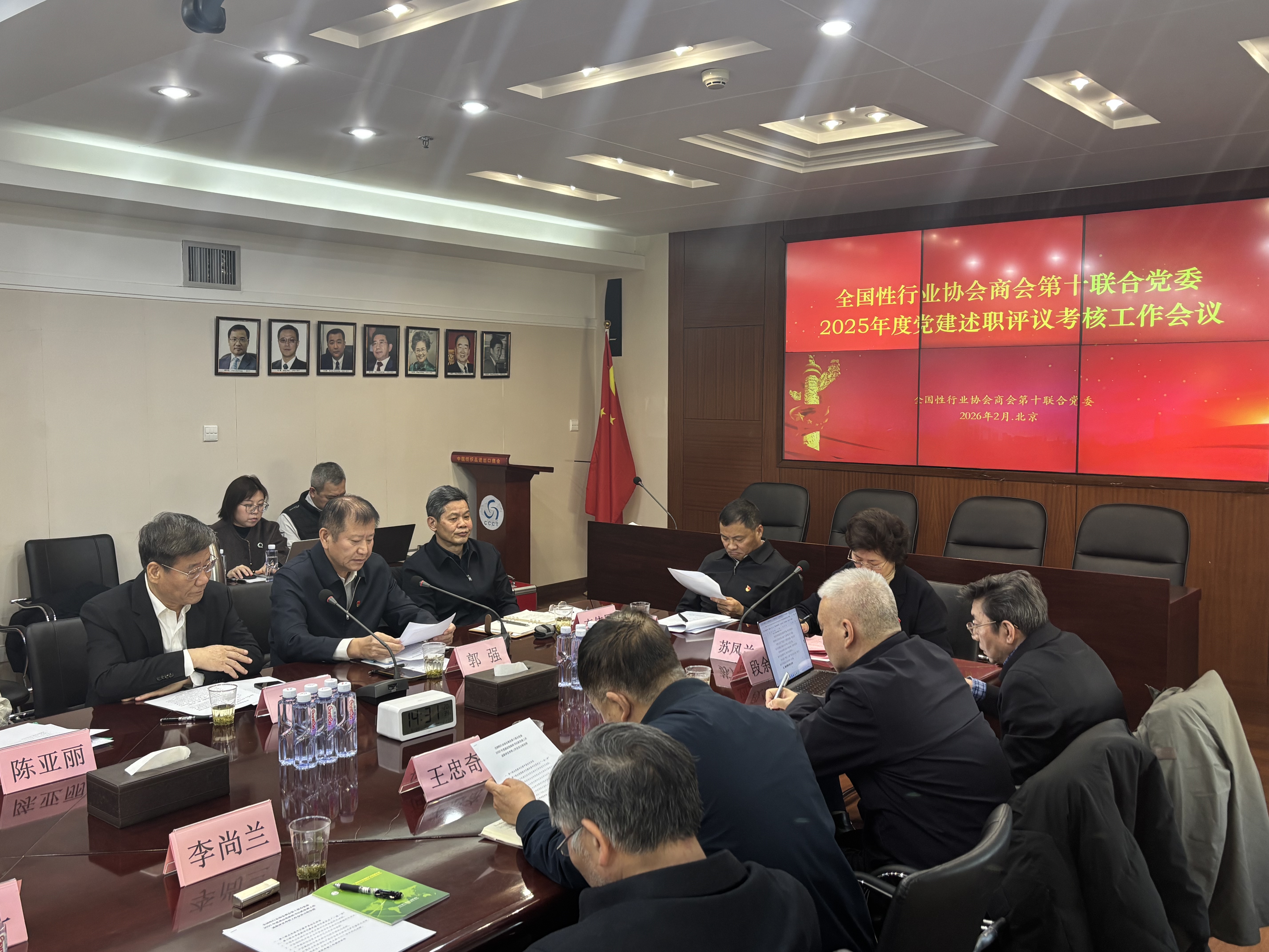 2026年2月2日下午,我会党支部书记、副理事长郭强参加全国性行业协会商会第十联合党委召开的党组织书记抓党建工作述职评议考核工作会议。第十联合党委书记、中国纺织进出口商会党委书记、会长曹甲昌出席并作动员讲话,第十联合党委副书记、纪委书记苏凤兰对现场述职进行“一述一评”,中央社会工作部三局有关负责同志到会指导。