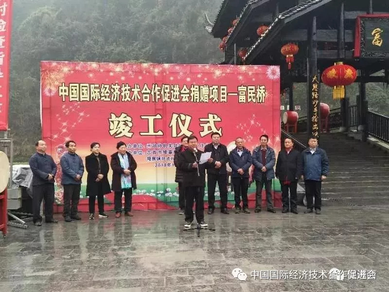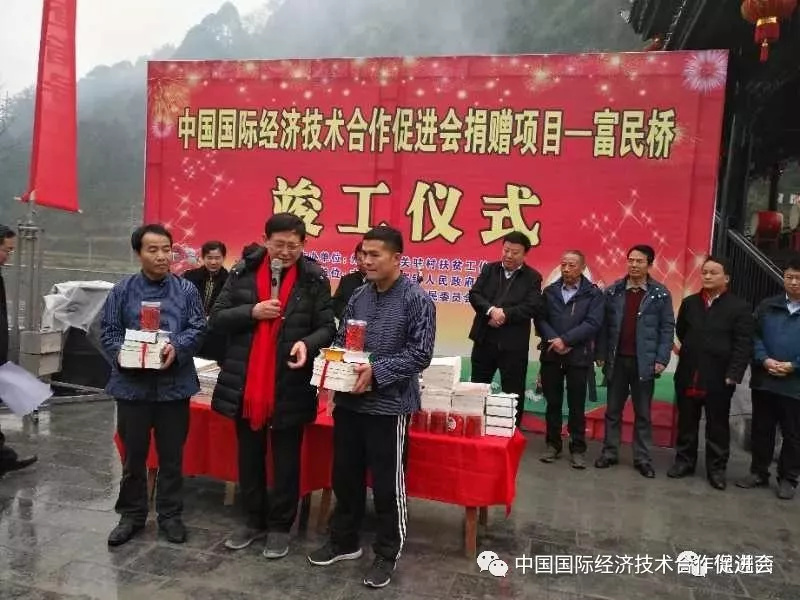 1月18日,中国国际经济技术合作促进会理事长杨春光一行到吉首市矮寨镇补点村实地考察扶贫捐赠项目,并参加了捐赠项目之一富民桥的竣工仪式。 -